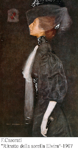 Anche nell'ambito della carriera artistica di Casorati si tratta di un ventennio di grande interesse per verificare il suo sviluppo artistico. Egli, infatti, esordisce nella pittura nel 1907, esponendo alla Biennale di Venezia e le opere di quegli anni risentono moltissimo delle suggestioni simbolico decorative della Secessione Viennese, in modo particolare di quelle di Gustav Klimt, come è evidente nei dipinti "Ritratto della sorella Elvira" (1907) [foto1], "Primavera", "Mattina" (1913) o "La via lattea" (1914).