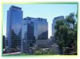 di relativamente alti palazzi vetrati, che di giorno disegnano