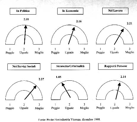 il 45% dei vicentini sono fiduciosi di ciò che riserverà loro il 1999. Lanno